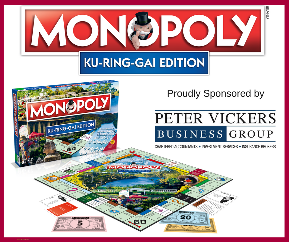 Peter Vickers Business Group is proud to be a silver sponsor of the Ku-ring-gai Edition of the much loved Monopoly board game.